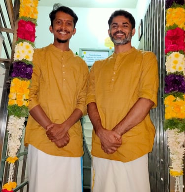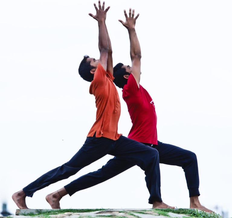 We (Amaresh & Charan) have been acquainted for over 15 years, sharing a deep bond. We pursued theater and movement arts at the same alma mater, and our collaboration extended to national and international theater and dance projects. During this time, we embarked on a joint journey of learning Yoga, immersing ourselves in ancient lineages like Bihar School of Yoga, Sivananda Yoga, Ashtanga Yoga, and Iyengar Yoga.